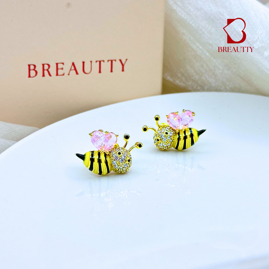 BREAUTTY HONEY BEE EARRINGS – 18K GOLD PLATED WITH PINK HEART WINGS