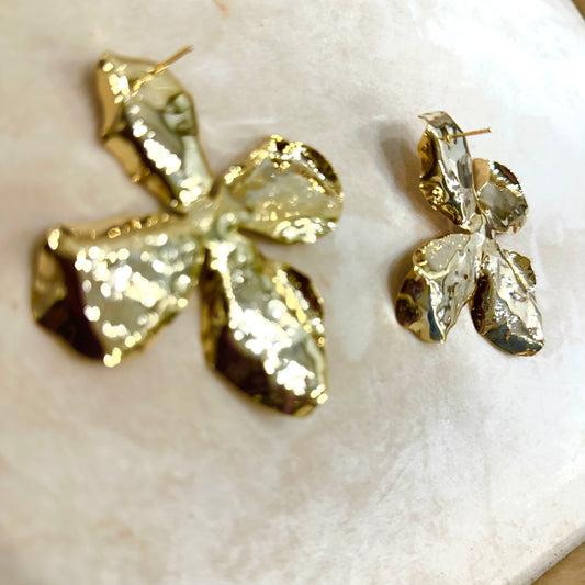 BREAUTTY GOLD BLOOM HAMMERED FLOWER EARRINGS