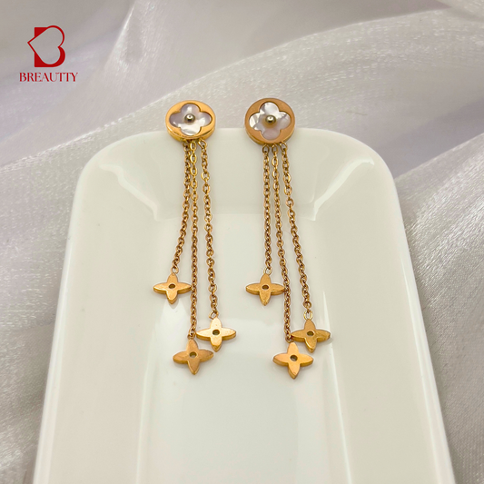 BREAUTTY 18K GOLD PLATED WHITE CLOVER HANGING EARRING