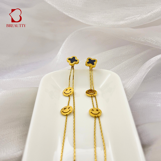 BREAUTTY 18K GOLD PLATED SMILEY WITH BLACK CLOVE EARRING