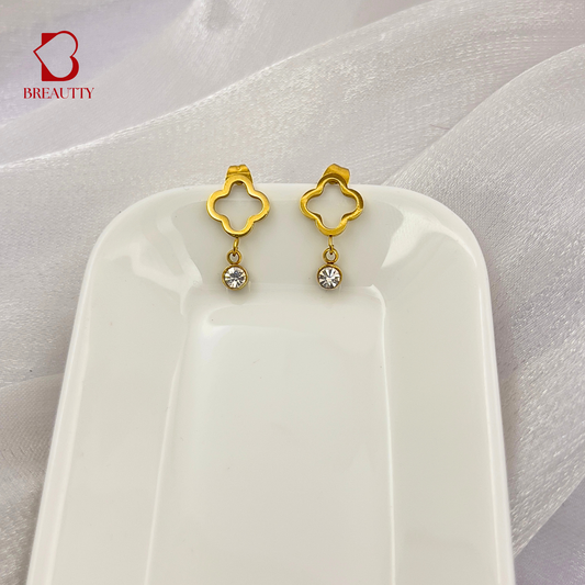 BREAUTTY 18K GOLD PLATED BLACK CLOVER CHARM EARRING