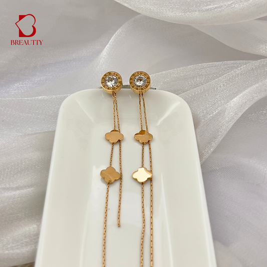 BREAUTTY 18K GOLD PLATED LONG HANGING EARRINGS BVLGARI INSPIRED | EFFORTLESS GLAMOUR