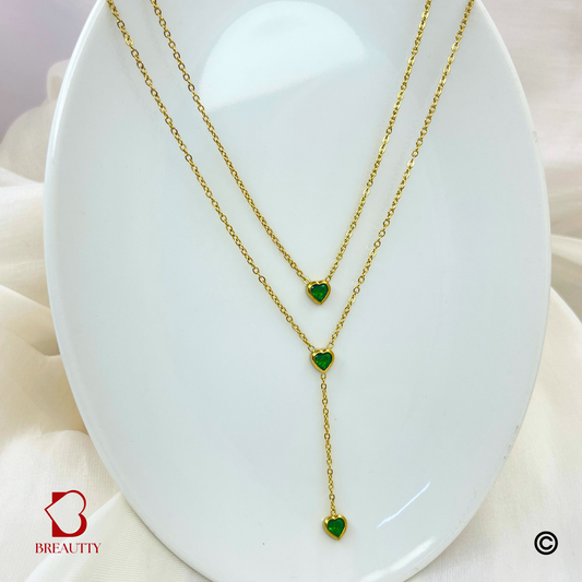 BREAUTTY 18K GOLD PLATED EMERALD HEART SHAPE NECKLACE