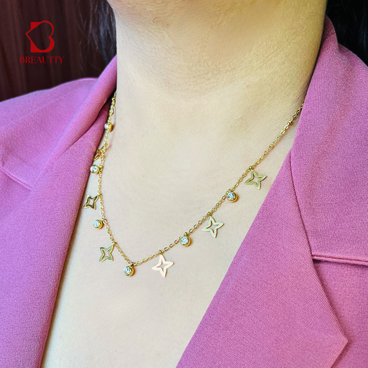 BREAUTTY 18K GOLD-PLATED STAR STUDDED NECKLACE