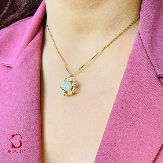 BREAUTTY 18K GOLD PLATED PEANUT CUT ZIRCONIA NECKLACE | WATERPROOF