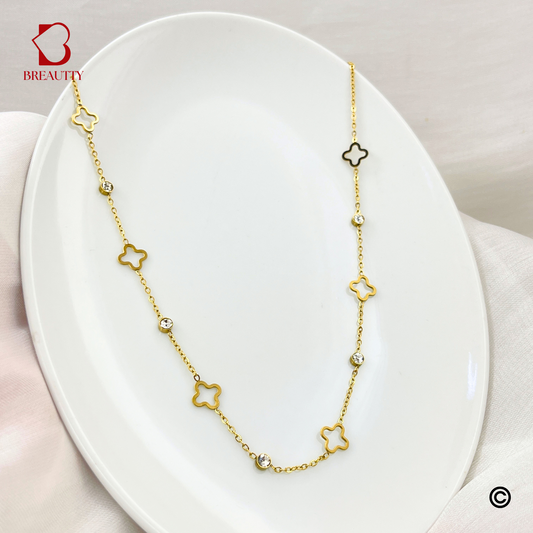 BREAUTTYELEGANT LONGTAIL 18K GOLD PLATED CLOVER NECKPIECE