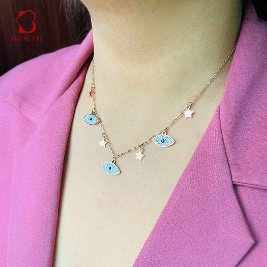BREAUTTY ROSE GOLD PLATED NECKLACE WITH EVIL EYE CHARMS AND STARS