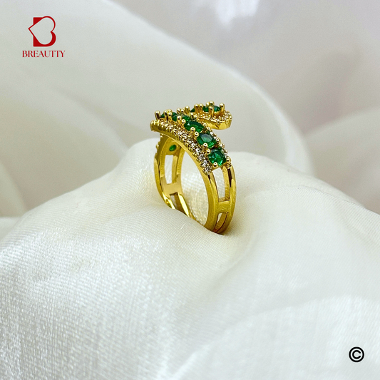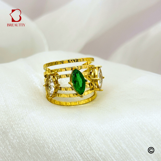BREAUTTY EMERALD SPARK MULTISTONE 18K GOLD PLATED LIGHTWEIGHT WATERPROOF RING – ADJUSTABLE