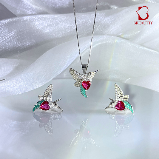 BREAUTTY 925 STERLING SILVER HUMMING BIRD PENDANT SET