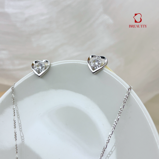 BREAUTTY 925 STERLING SILVER SPARKLING HEART PENDANT SET