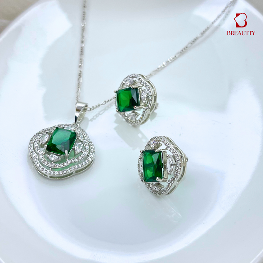 BREAUTTY 92.5 STERLING SILVER EMERALD GREEN STONE PENDANT SET