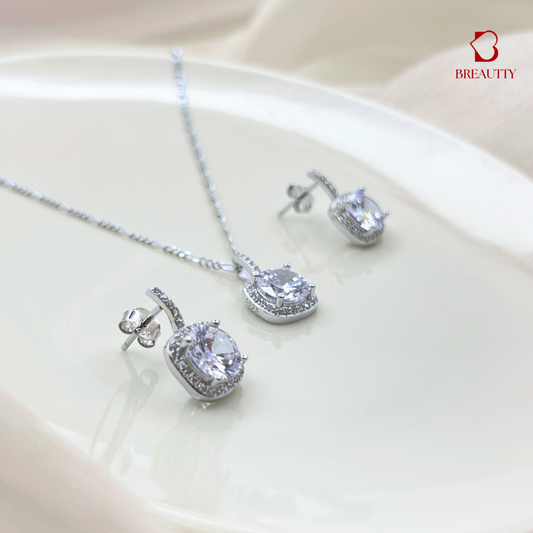 BREAUTTY 925 STERLING SILVER SQUARE SOLITAIRE PENDANT SET