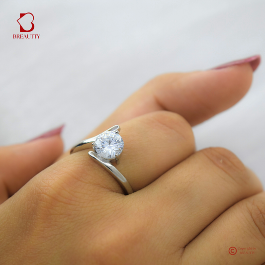 BREAUTTY 925 STERLING SILVER SWISS ZIRCON SOLITAIRE RING | ADJUSTABLE