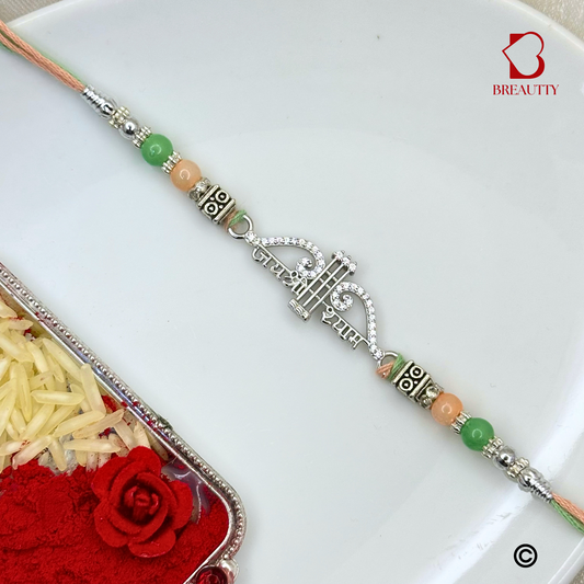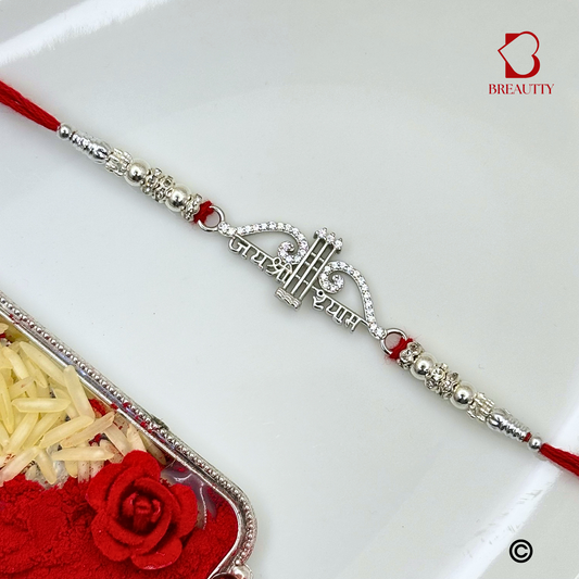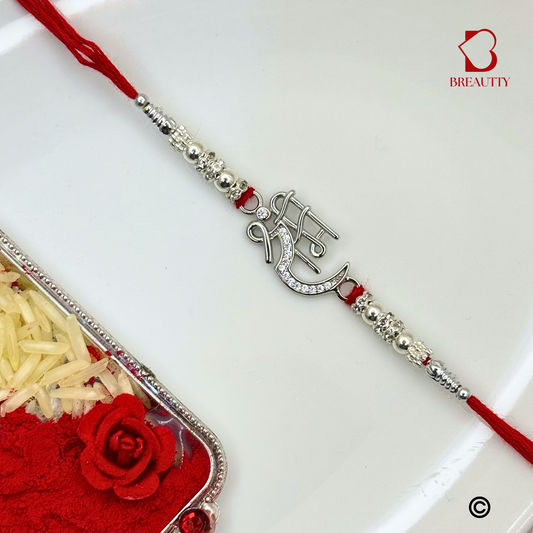 BREAUTTY RAKSHA BANDHAN 925 STERLING SILVER RAKHI "SHRI RAM" WITH RED THREAD | HALLMARKED SILVER RAKHI