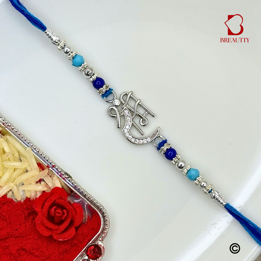 BREAUTTY RAKSHA BANDHAN 925 STERLING SILVER RAKHI "SHRI RAM" WITH BLUE THREAD | HALLMARKED SILVER RAKHI
