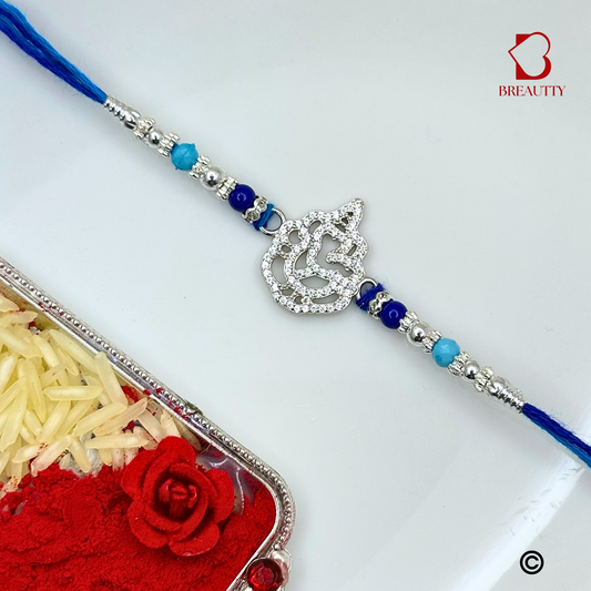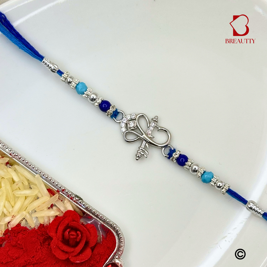 BREAUTTY RAKSHA BANDHAN 925 STERLING SILVER RAKHI "OM" WITH BLUE THREAD | HALLMARKED SILVER RAKHI