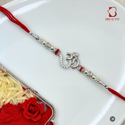 BREAUTTY RAKSHA BANDHAN 925 STERLING SILVER RAKHI "OM" WITH RED THREAD | HALLMARKED SILVER RAKHI