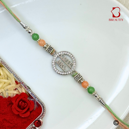 BREAUTTY RAKSHA BANDHAN 925 STERLING SILVER RAKHI "CUTE" WITH GREEN THREAD | HALLMARKED SILVER RAKHI