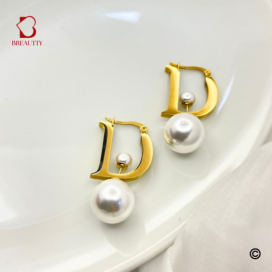 BREAUTTY 18K GOLD PLATED D-SHAPE DIOR INSPIRED EARRING