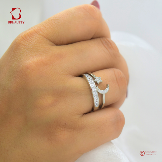 BREAUTTY 92.5 STERLING SILVER MOON STAR ADJUSTABLE RING