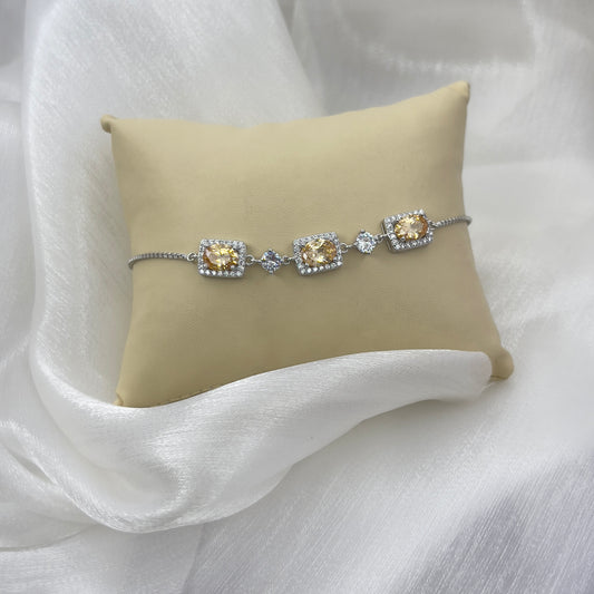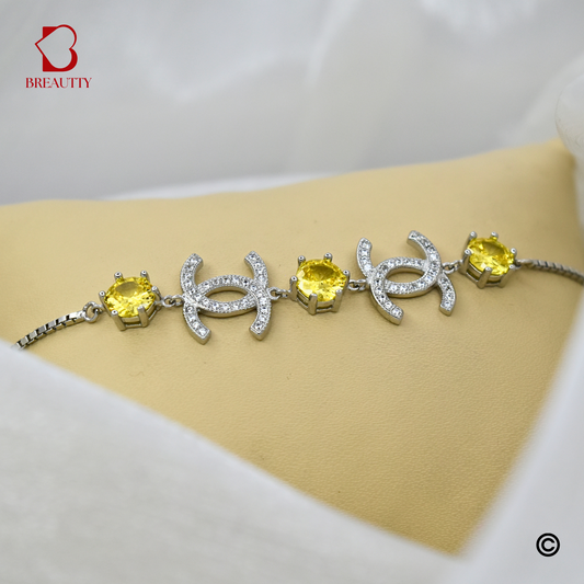 BREAUTTY 925 STERLING SILVER CHANEL YELLOW CITRINE STONE BRACELET | ADJUSTABLE