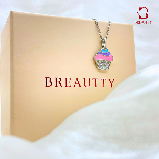 BREAUTTY CUPCAKE SILVER NECKPIECE FOR GIRLS - 925 STERLING SILVER PENDANT FOR KIDS
