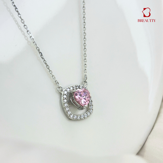 BREAUTTY PINK HEART IN SQUARE 925 STERLING SILVER NECKPIECE