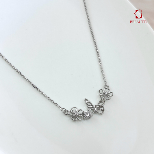 BREAUTTY 925 STERLING SILVER BUTTERFLY NECKLACE WITH FLOWERS