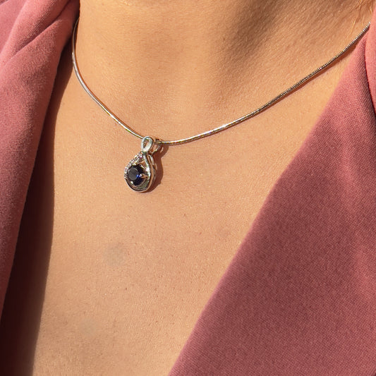 BREAUTTY 925 STERLING SILVER LONDON BLUE TOPAZ SOLITAIRE PENDANT CHAIN | RHODIUM POLISHED