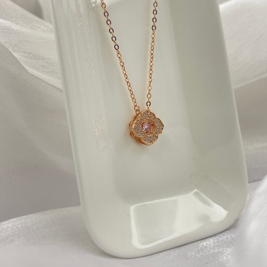 BREAUTTY 925 STERLING SILVER | PINK CLOVE STUD PENDANT CHAIN | ROSE GOLD PLATED