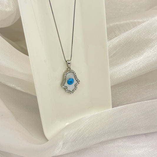BREAUTTY 925 STERLING SILVER HAMSA HAND EVIL EYE PENDANT