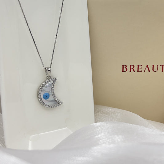 BREAUTTY 925 STERLING SILVER MOON EVIL EYE PENDANT CHAIN