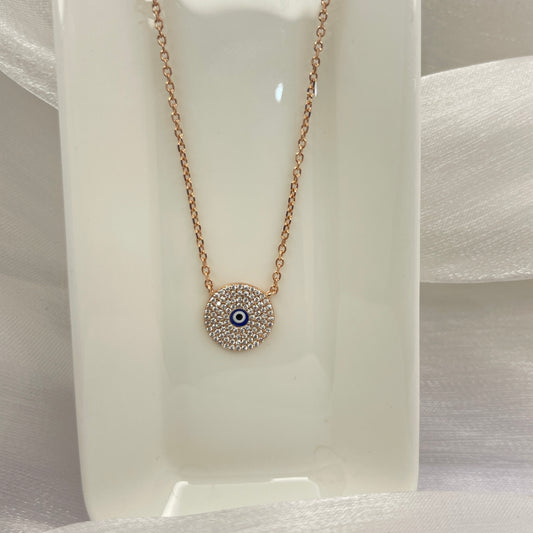 BREAUTTY 925 STERLING SILVER GREEK EVIL EYE NECKLACE IN DELICATE BOHO STYLE | ROSE GOLD PLATING