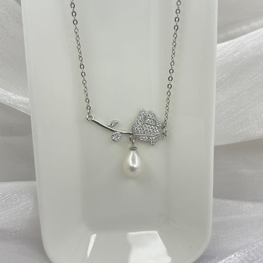 BREAUTTY 925 STERLING SILVER ROSE NECKLACE WITH PEARL AND CUBIC ZIRCONIA | (RHODIUM POLISHED)