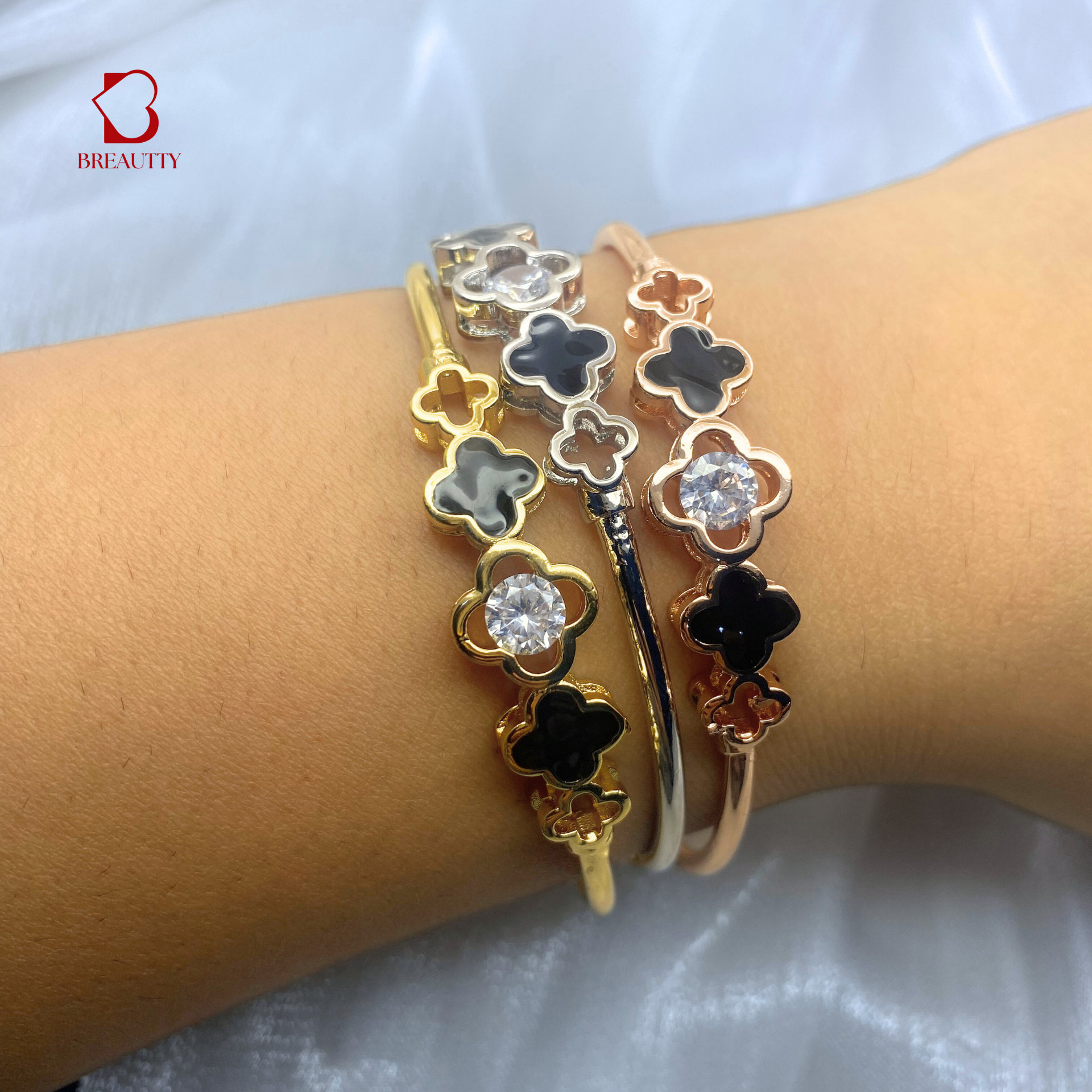 BREAUTTY 18K GOLD-PLATED BLACK CLOVER BRACELET SET