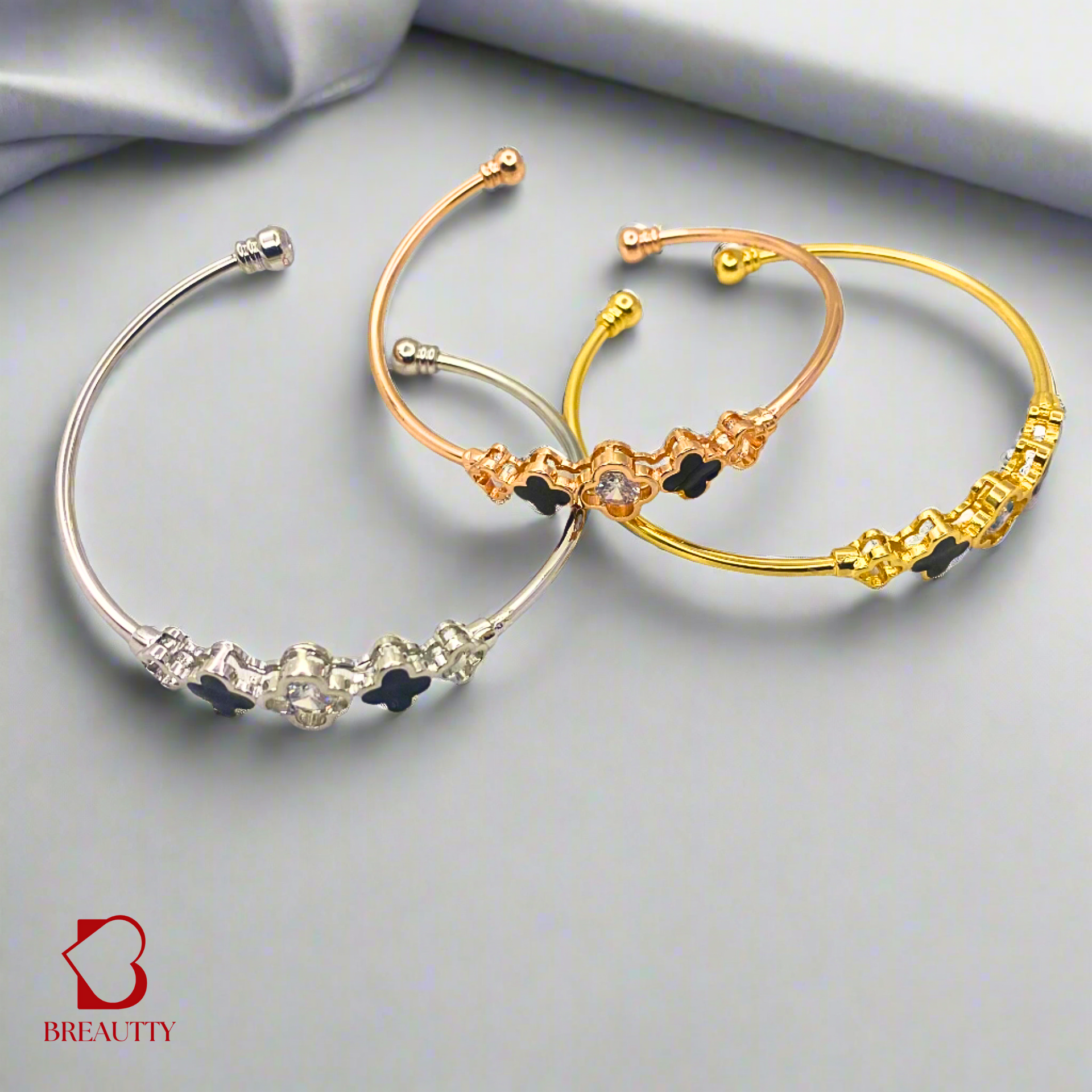 Bring luck and elegance with our BREAUTTY 18k Gold-Plated Black Clover Bracelet Set. This set of three bracelets is available in rose gold, yellow gold, and silver, perfect for stacking or wearing individually. Adjustable, waterproof, and anti-tarnish, ideal for everyday wear.
