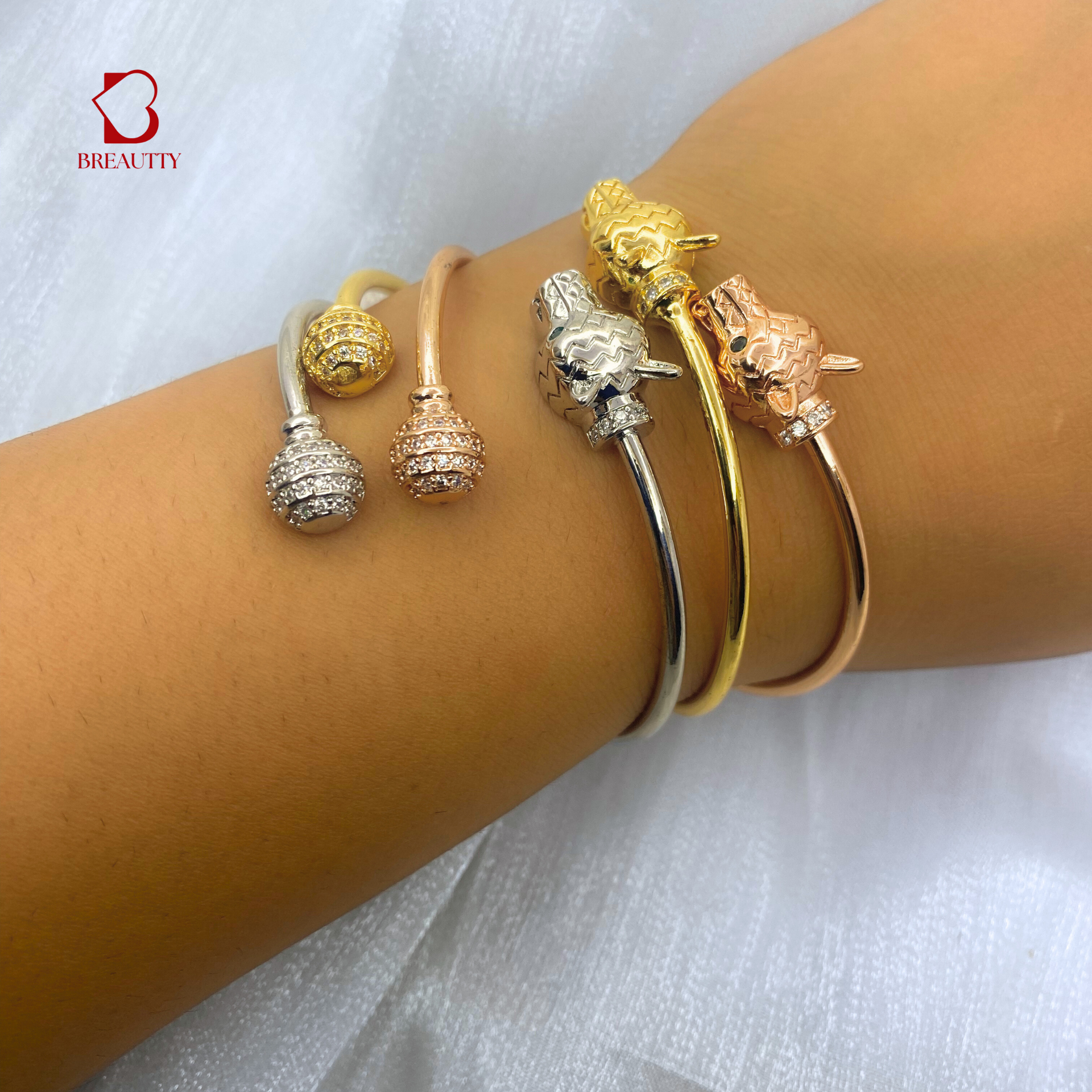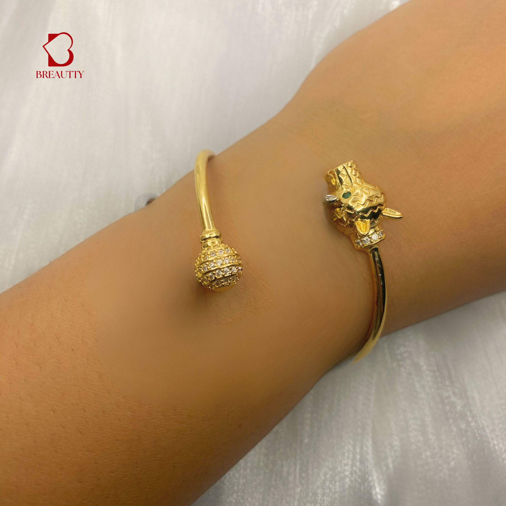 BREAUTTY 18K GOLD-PLATED PANTHER BRACELET STACK
