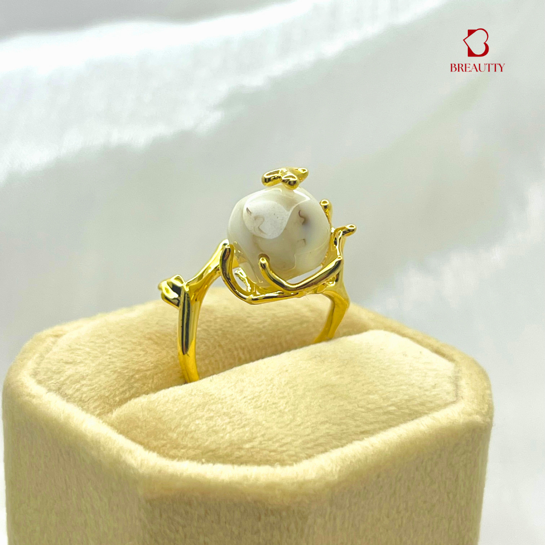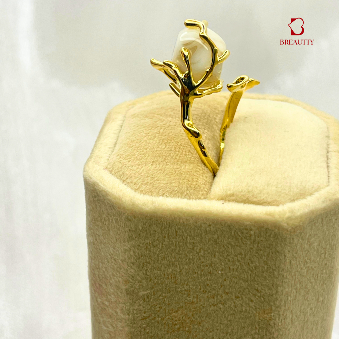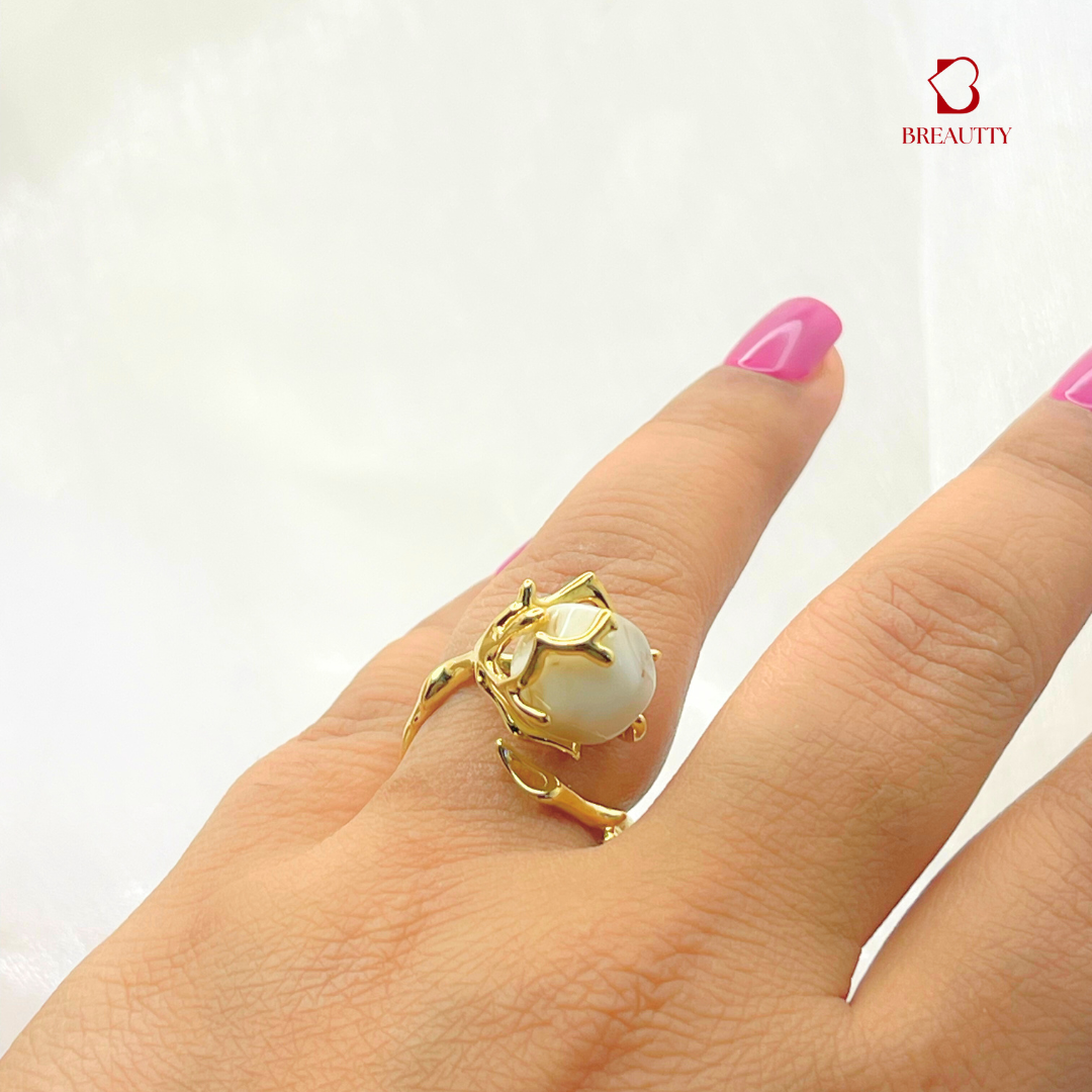 BREAUTTY GOLDEN PATTERN WITH MOP STONE RING | ADJUSTABLE