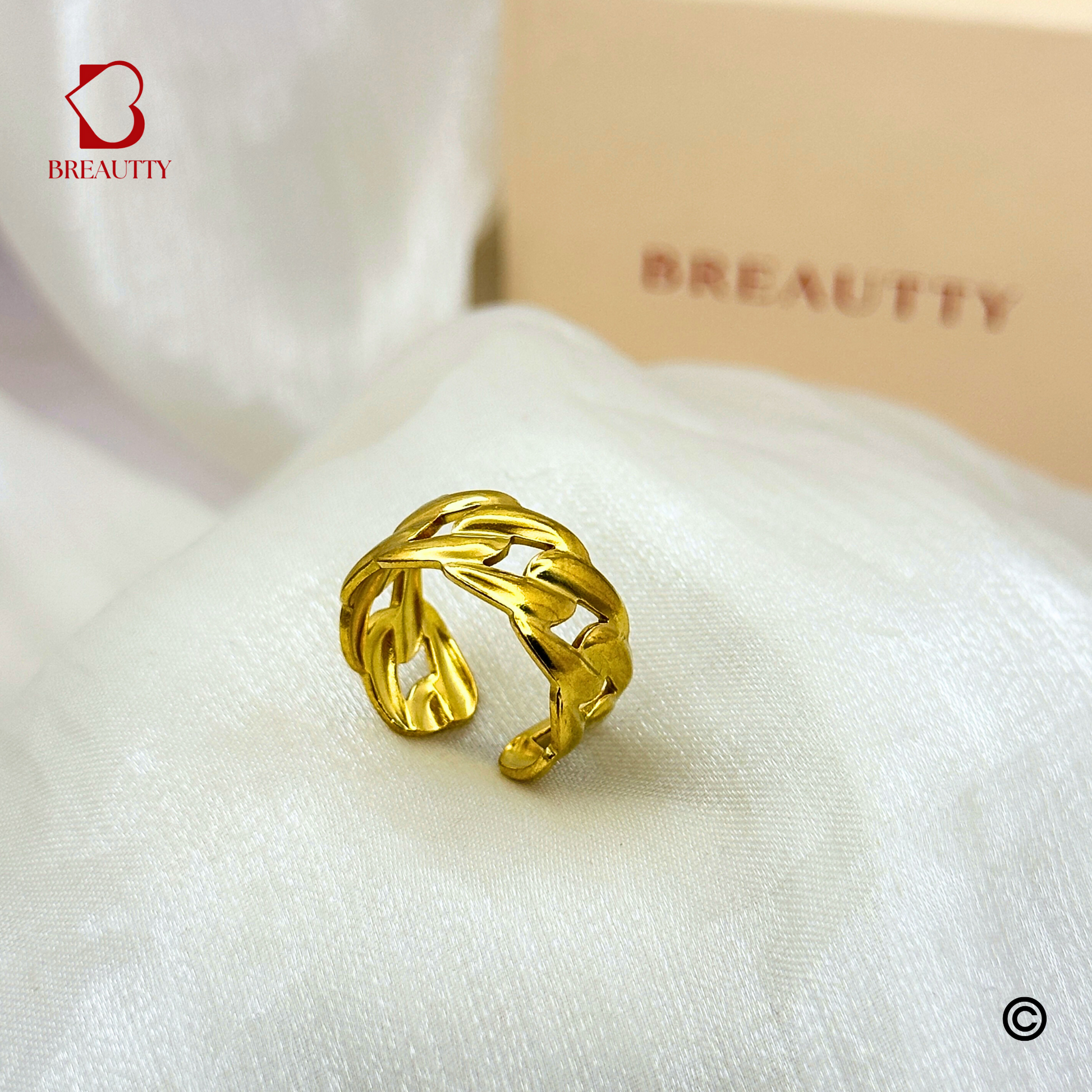 A timeless beauty, this 18K gold plated ring features a chic braided texture that adds elegance to your everyday look. Lightweight, waterproof, and adjustable, it’s designed for effortless sophistication.