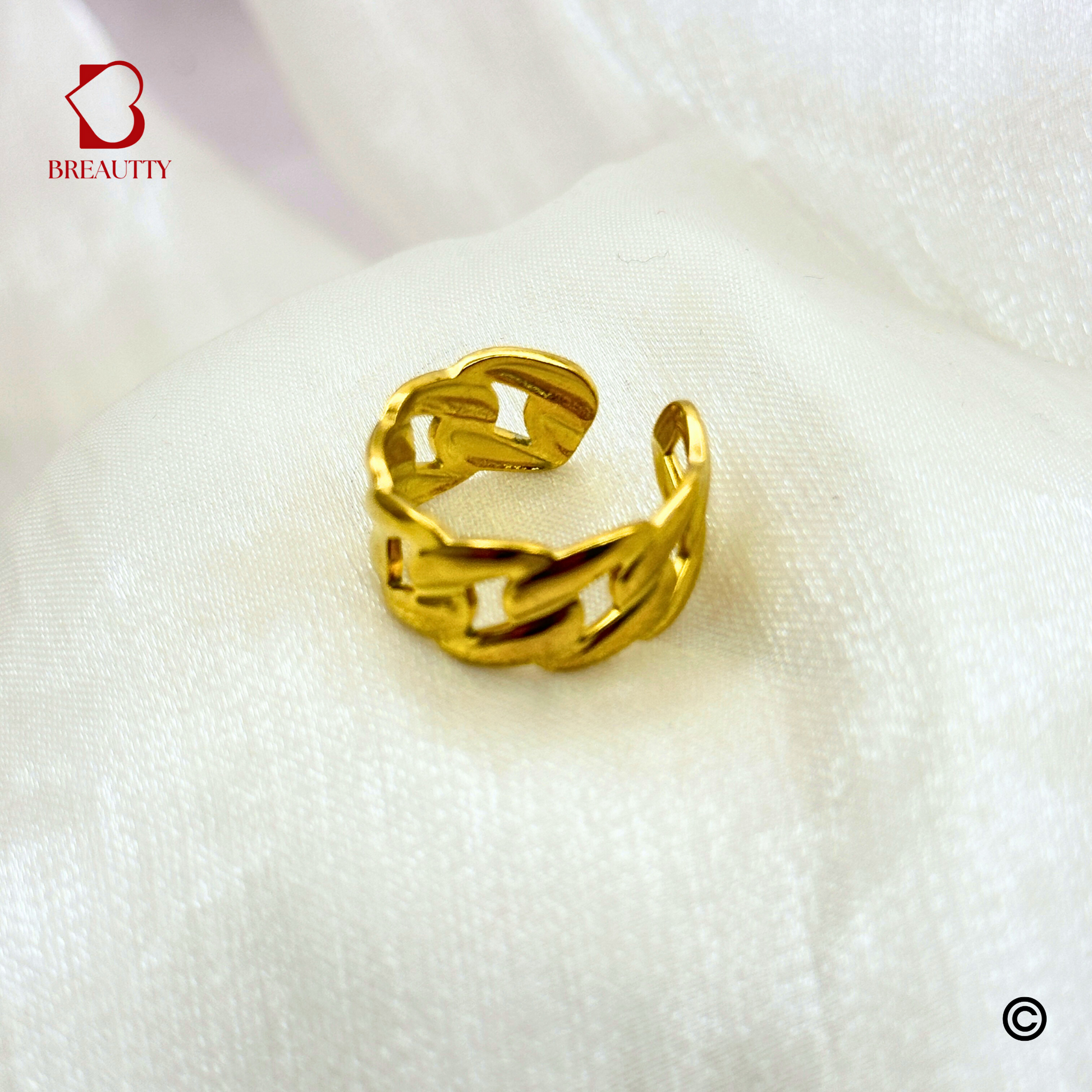 BREAUTTY BRAIDED TEXTURED 18K GOLD PLATED LIGHTWEIGHT WATERPROOF RING – ADJUSTABLE