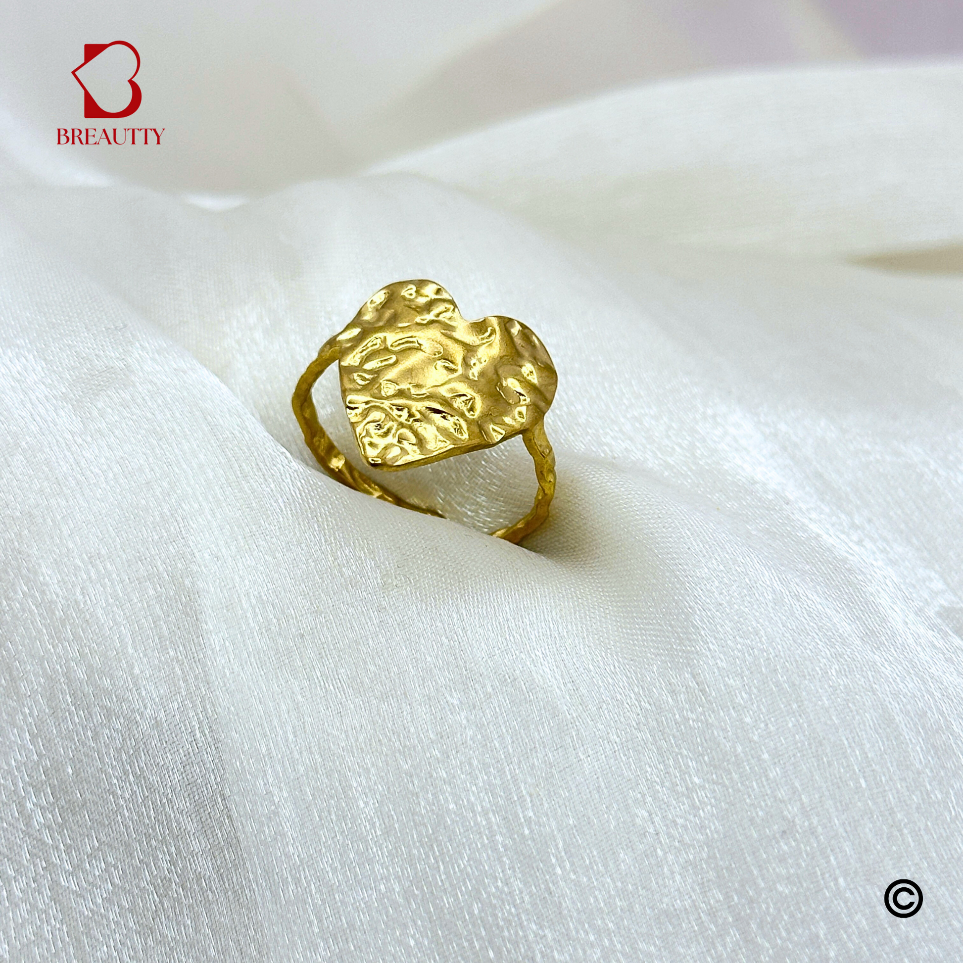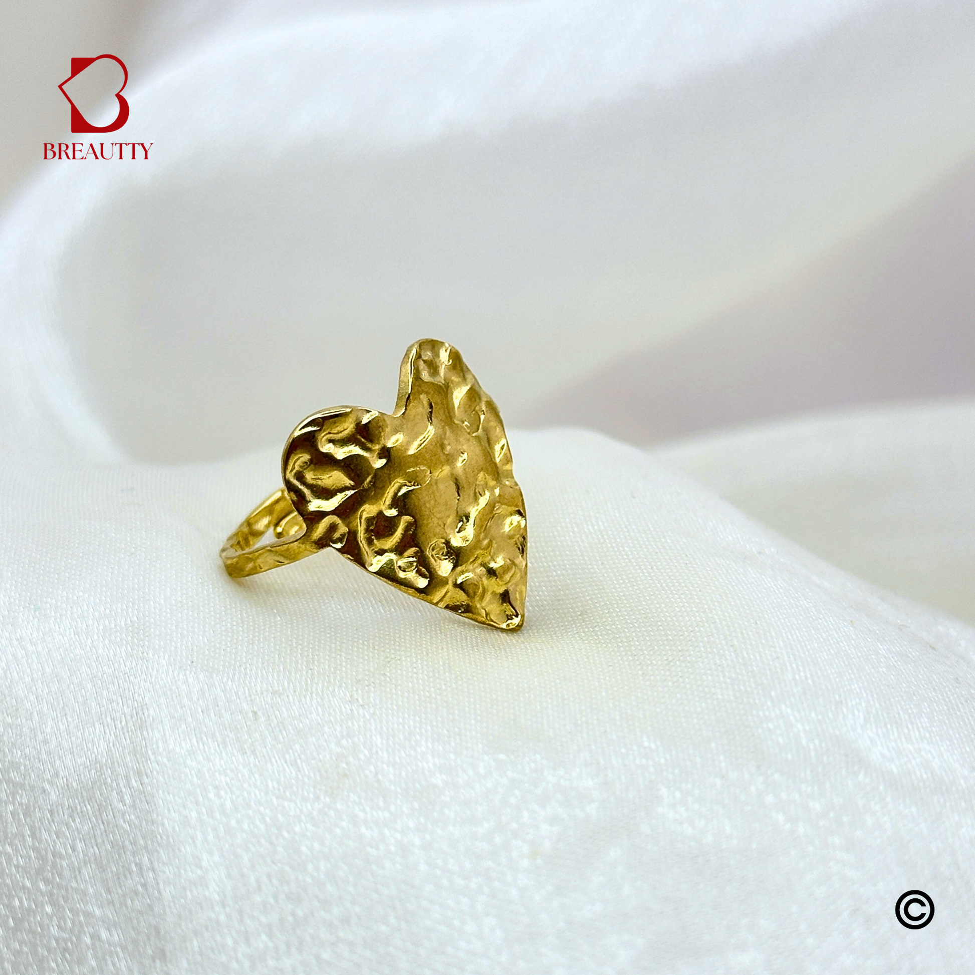 BREAUTTY GOLDEN HAMMERED HEART RING |ADJUSTABLE